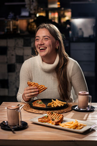 I brought a friend to model, and we tried the best hot chocolate I’ve ever had - and as a pro hot chocolate snob, that's a big complement.
